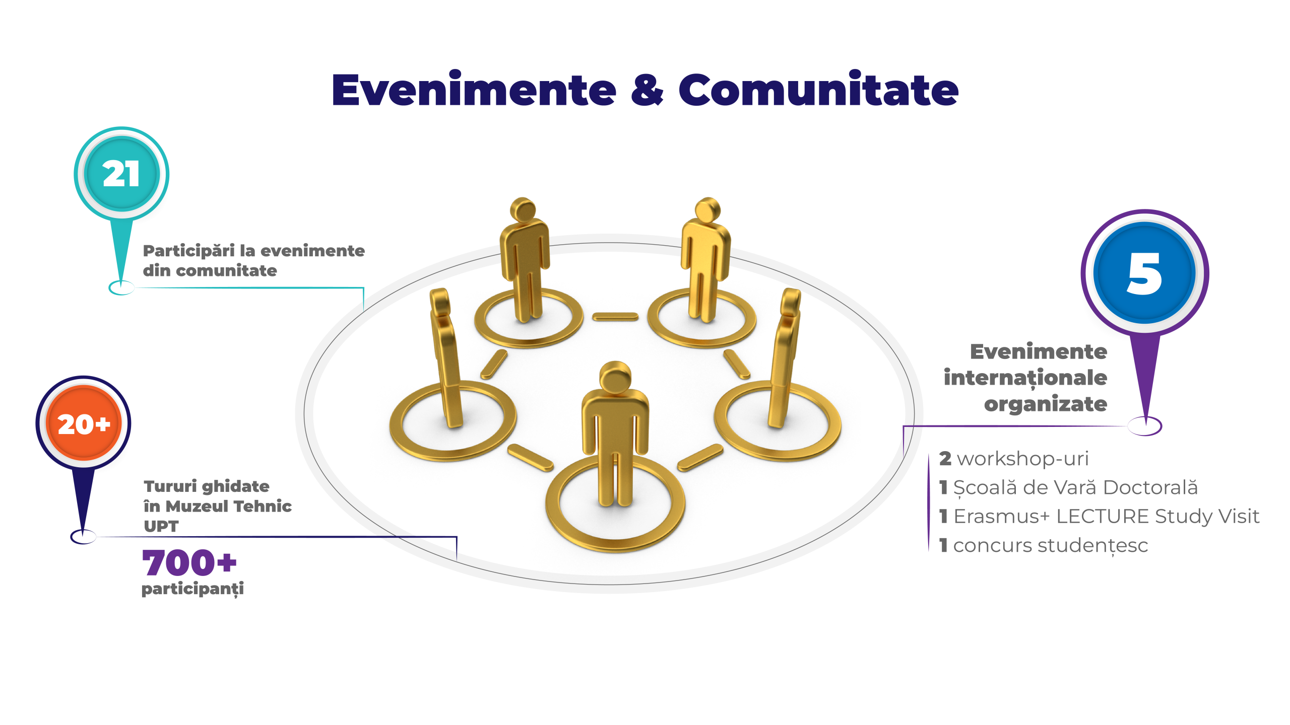 Și în anul 2025 am fost aproape de comunitate, atât fizic, cât și online, prin intermediul rețelelor de socializare, al clipurilor noastre video și au avut peste 1,5 mil. de vizualizări, în timp ce contul nostru de Instagram @elearning_upt a fost vizualizat de peste 18.2k ori, iar pe LinkedIn am generat 160 de conexiuni profesionale și peste 6.5k afișări de conținut.