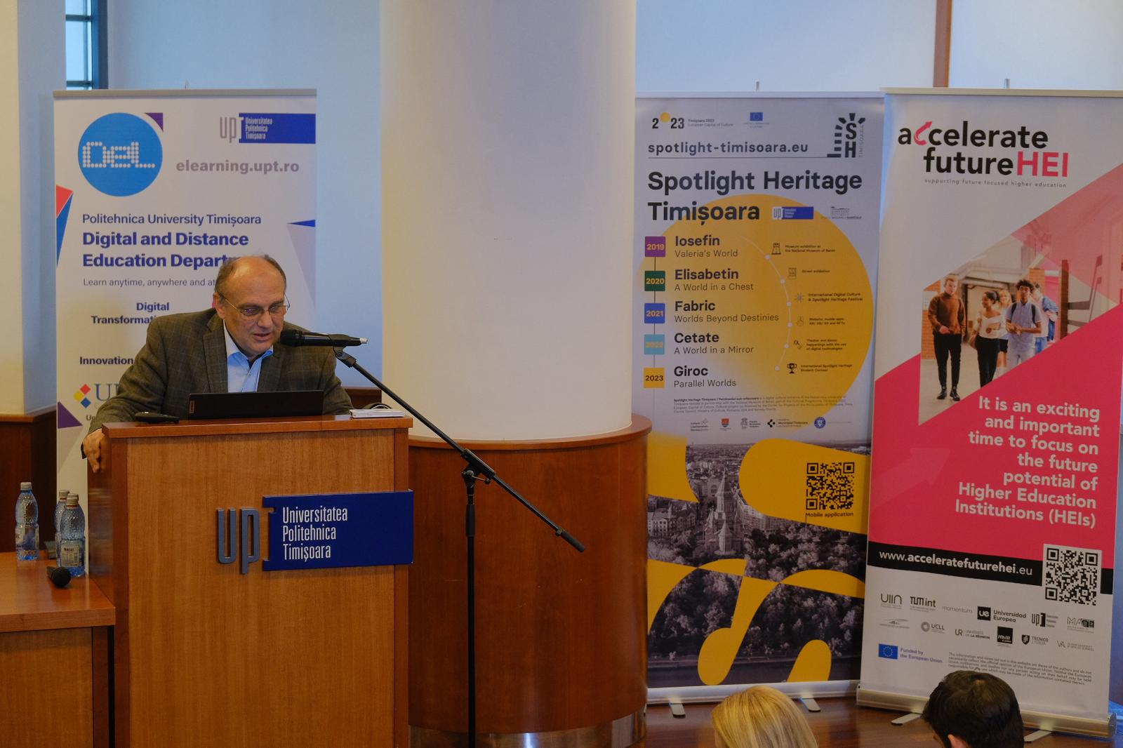 Evenimentul, desfășurat în format hibrid, a reunit peste 500 de participanți, din care 466 online, și 50 de participanți în sala K1 a Centrului de Conferințe al UPT iar sesiunile au abordat impactul inteligenței artificiale, realității virtuale și augmentate, dar și blockchain asupra educației și cercetării, oferind exemple practice și studii de caz.