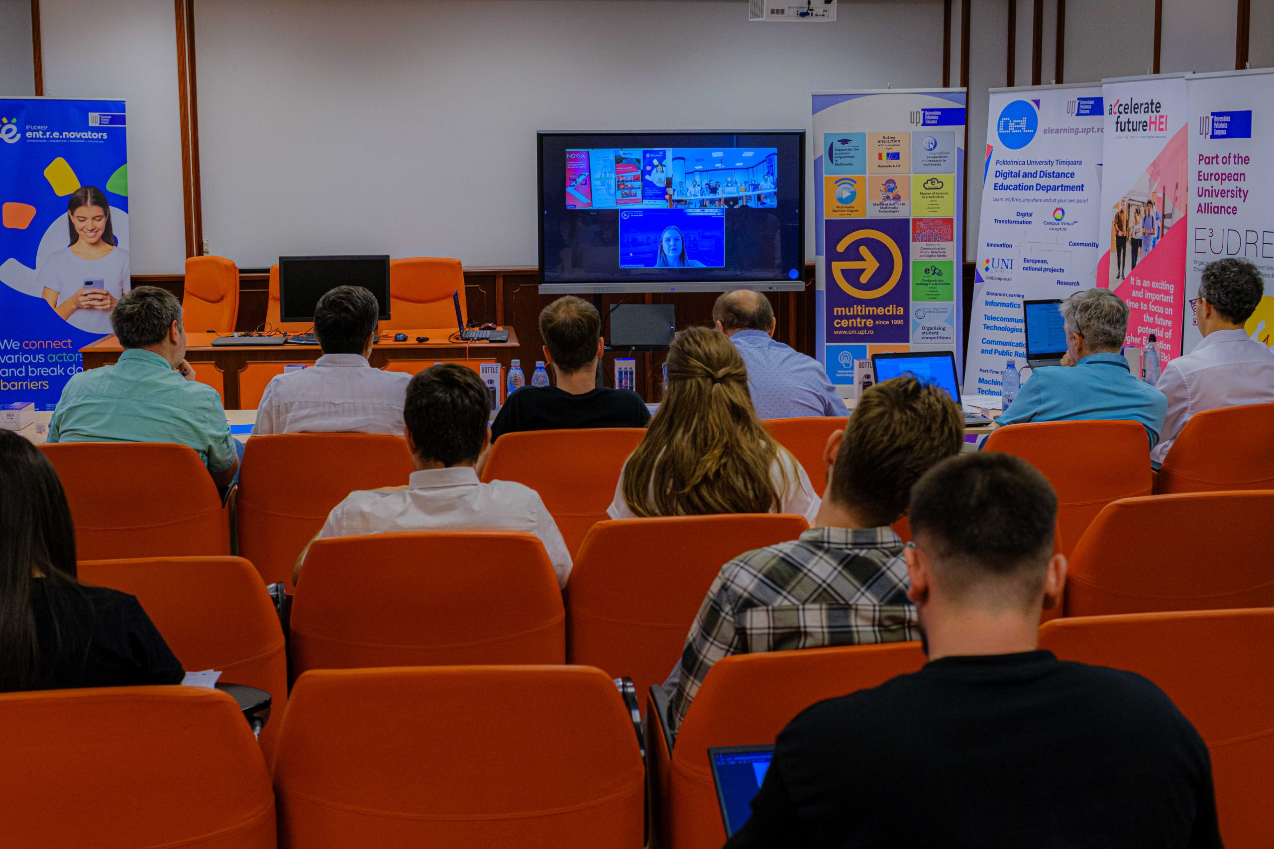 În cadrul evenimentului Noaptea Cercetătorilor Europeni, proiectul E³UDRES² Ent-r-e-novators a fost prezentat publicului larg prin rezultatele cercetării aplicate dezvoltate de UPT, atrăgând peste 7.000 de vizitatori la Nokia Campus și peste 200 la Muzeul Tehnic. Participarea UPT a evidențiat obiectivele proiectului de a consolida rețelele de cercetare și ecosistemele de inovare regională, oferind participanților ocazia de a vedea în mod direct modul în care cercetarea fundamentală și aplicată contribuie la dezvoltarea de soluții inovatoare cu un impact real asupra comunității europene.