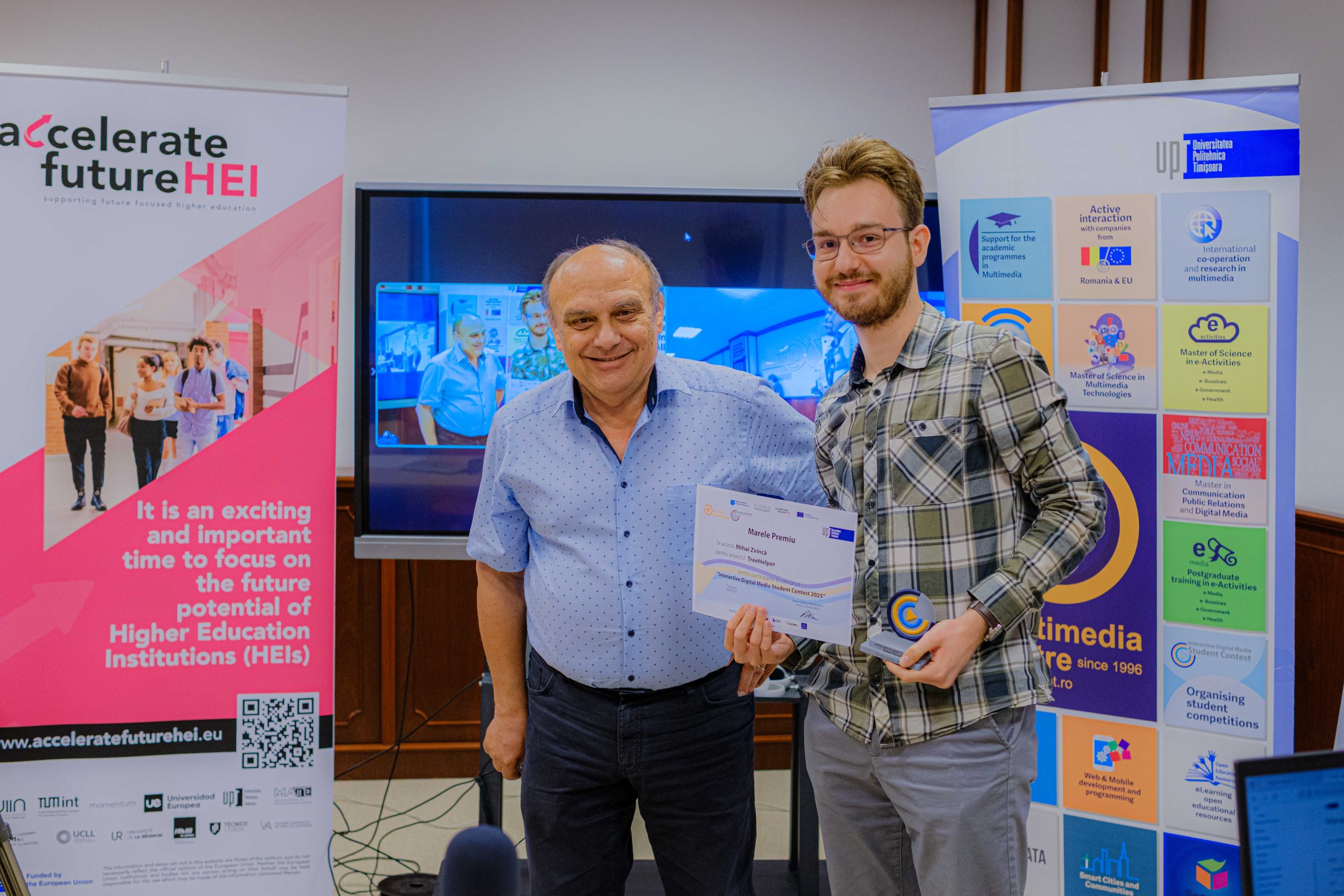 Ediția din acest an s-a desfășurat sub umbrela proiectului Accelerate Future HEI, care a oferit și marele premiu câștigătoruluiAlexandru-Mihai Zvîncă (Automatică și Calculatoare, UPT) pentru proiectul TreeHelper – Wood Transport Authorization and Monitoring System , un sistem inteligent de monitorizare care demonstrează impactul pe care îl pot avea ideile studențești.